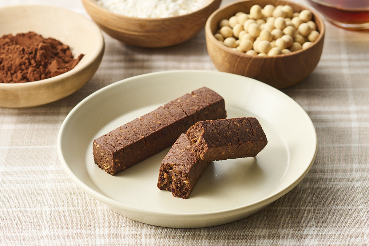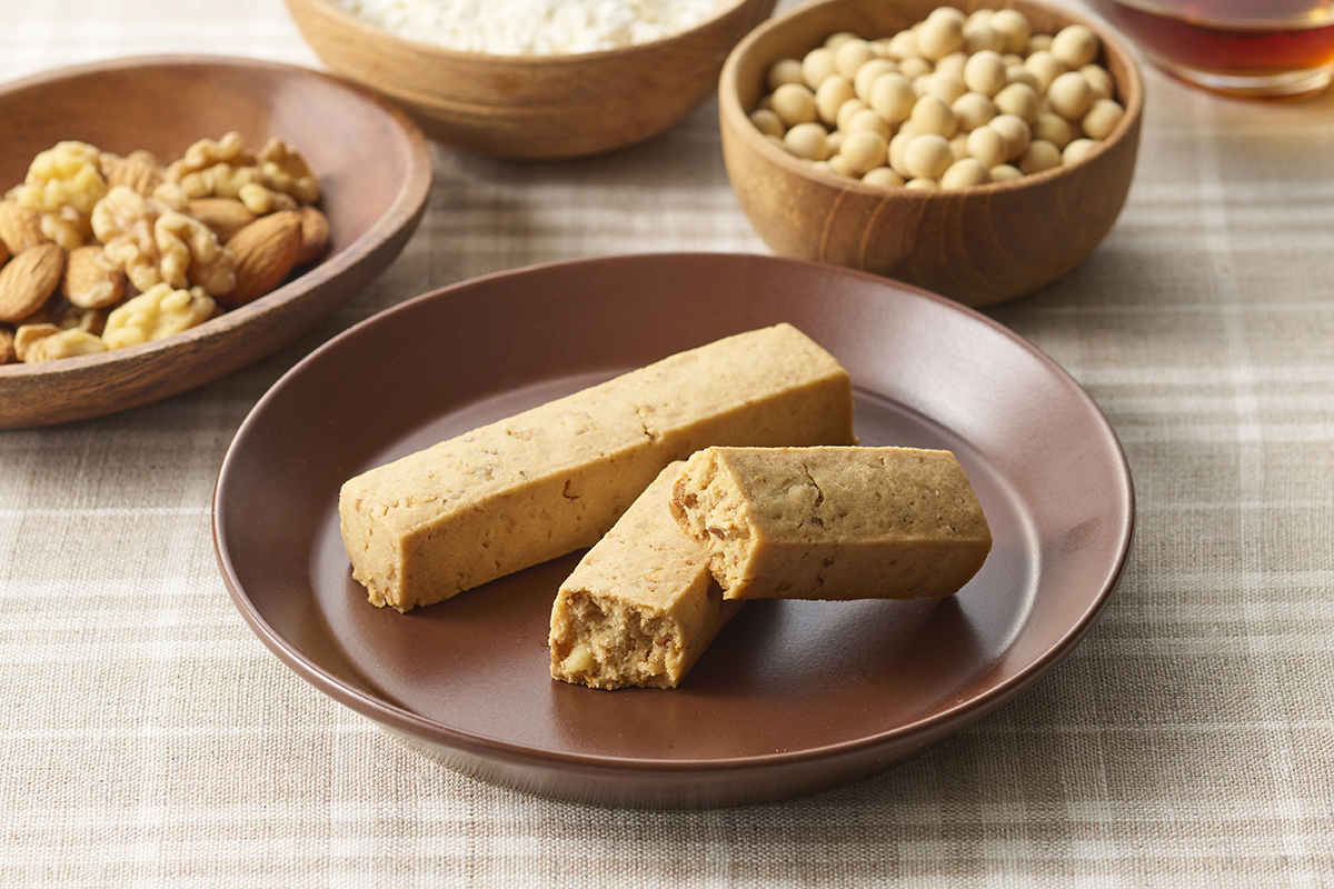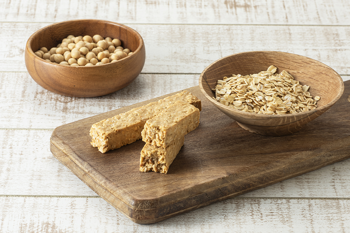 小麦を控えている方には嬉しいポイント、小麦の代わりにオーツ麦を使用しました。ナッツと大豆クラッシュのザクザクとした食感と、オーツ麦で満足感も◎。