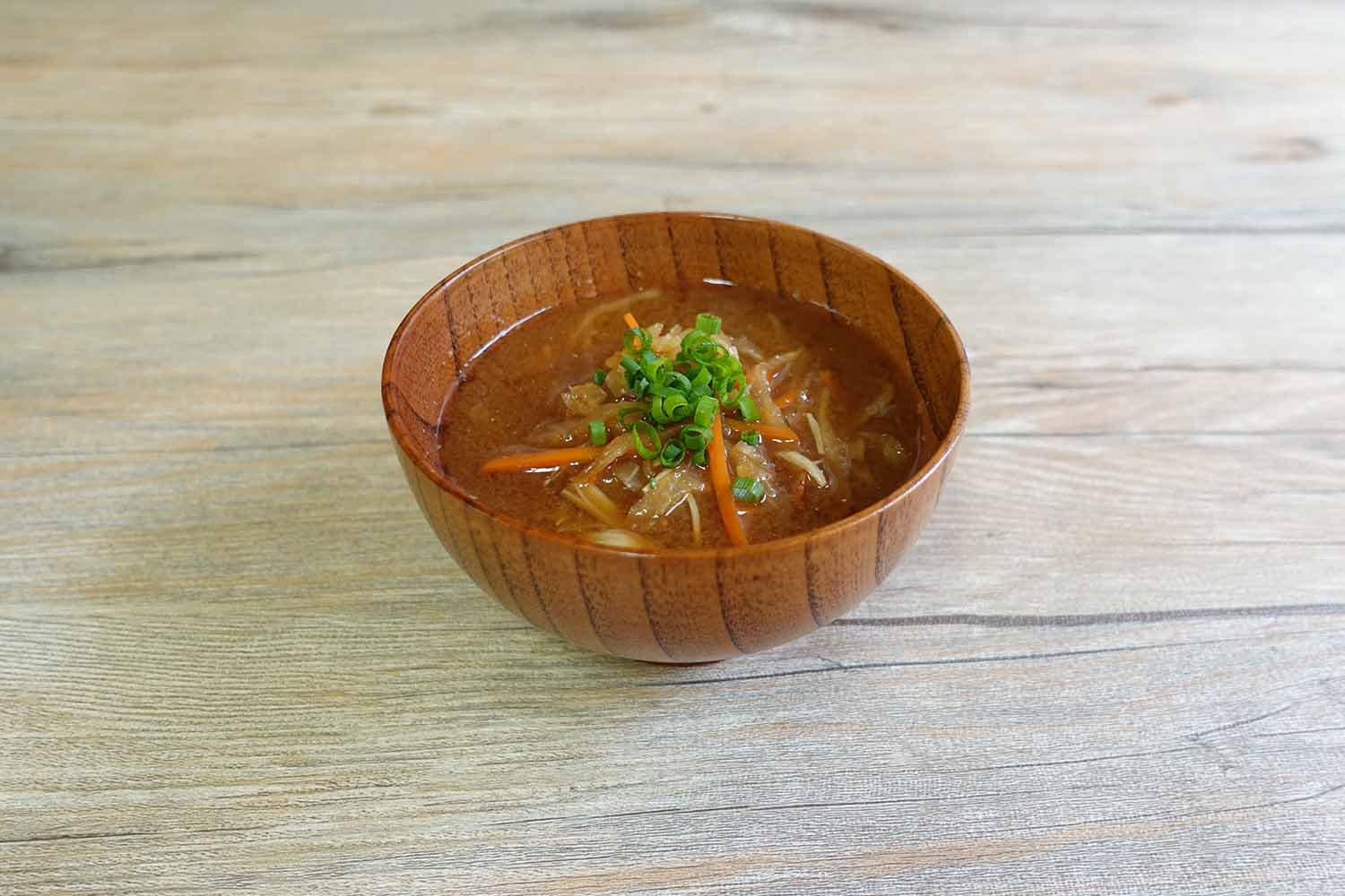 お湯を注ぐだけで本格派具だくさんみそ汁。インスタントでも素材にはこだわっています。