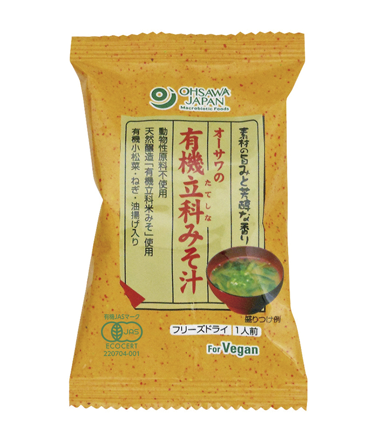 有機立科米みそを使用した、お湯を注ぐだけのフリーズドライの簡単みそ汁。