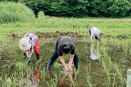 米づくりでは、陽(火)と水のエネルギーが生み出すお米の生命力、助け合ってこそ得られる収穫の尊さ、そして食に対する自立の大切さを学んでいます。