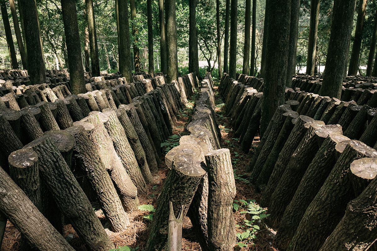 かつては自然発生するのを採取していただけでしたが、江戸時代から栽培が始まり、現在では原木栽培と菌床栽培があります。原木栽培は、森のなかの“ほだ場”で、クヌギなどの原木に椎茸の種菌(菌駒)を打ち込み、椎茸が出てくるのを待つ自然栽培。