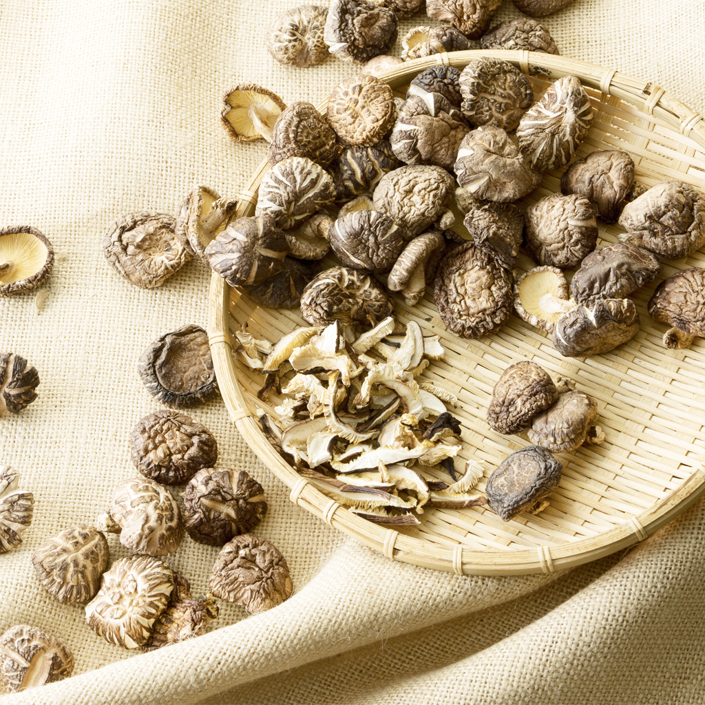 - たっぷりの水にしっかりと戻し、足(いしづき)を切って使用。要加熱調理。戻し汁は、だし汁として利用可能。