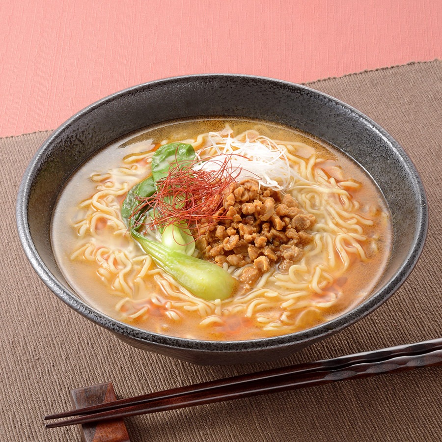 - めん【小麦粉[小麦(北海道)]、焼酎、食塩(シママース)、小麦グルテン、かんすい】、スープ[胡麻、食塩(天塩)、本みりん、食用植物油脂(胡麻油、パプリカ)、清酒、醤油、味噌、メープルシュガー、酵母エキス、香辛料(にんにく、生姜、唐辛子、こしょう)、馬鈴薯でん粉]