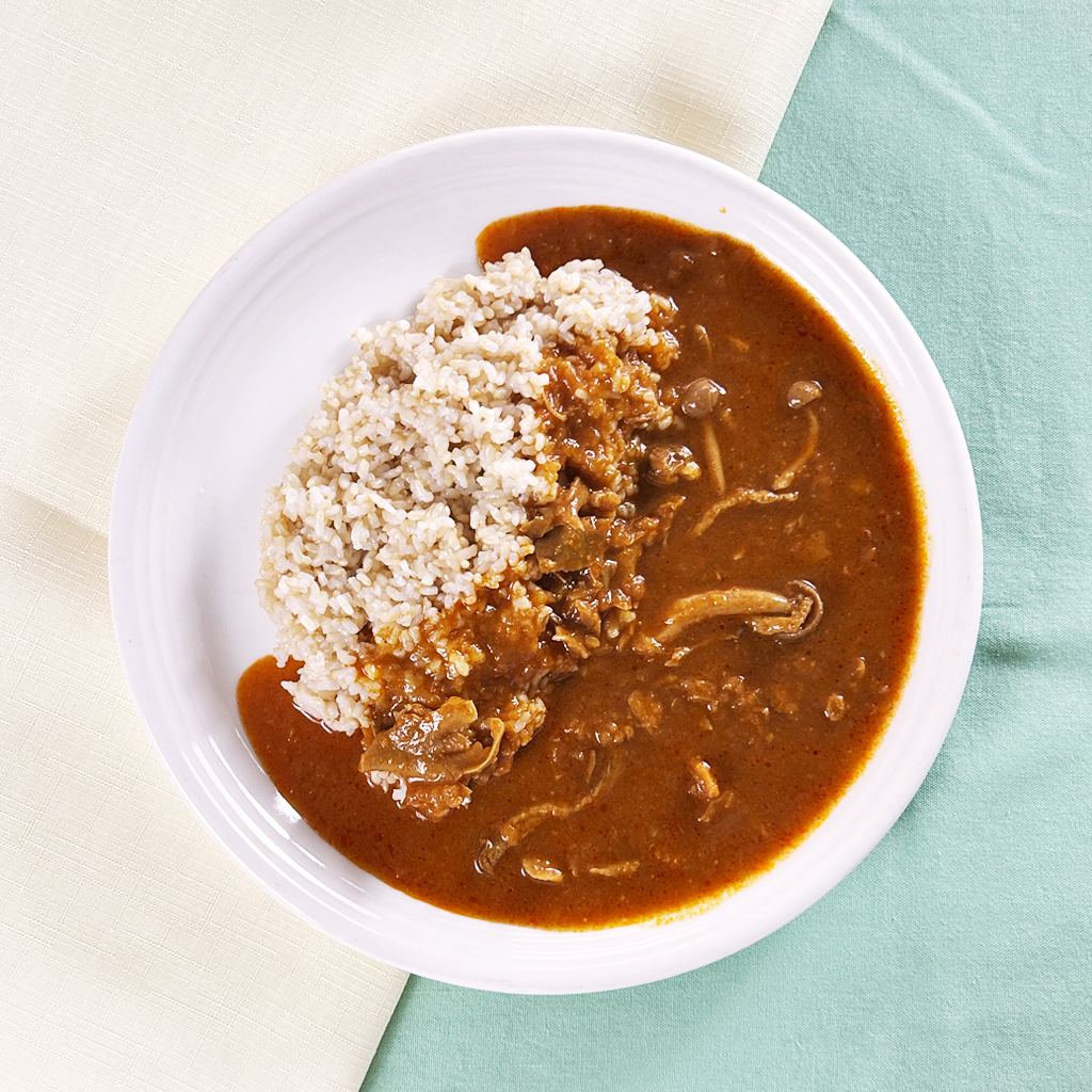 - ローストオニオン[玉ねぎ(国産)]、まいたけ・ぶなしめじ(国産)、なたね油、平茸(国産)、有機トマトペースト
