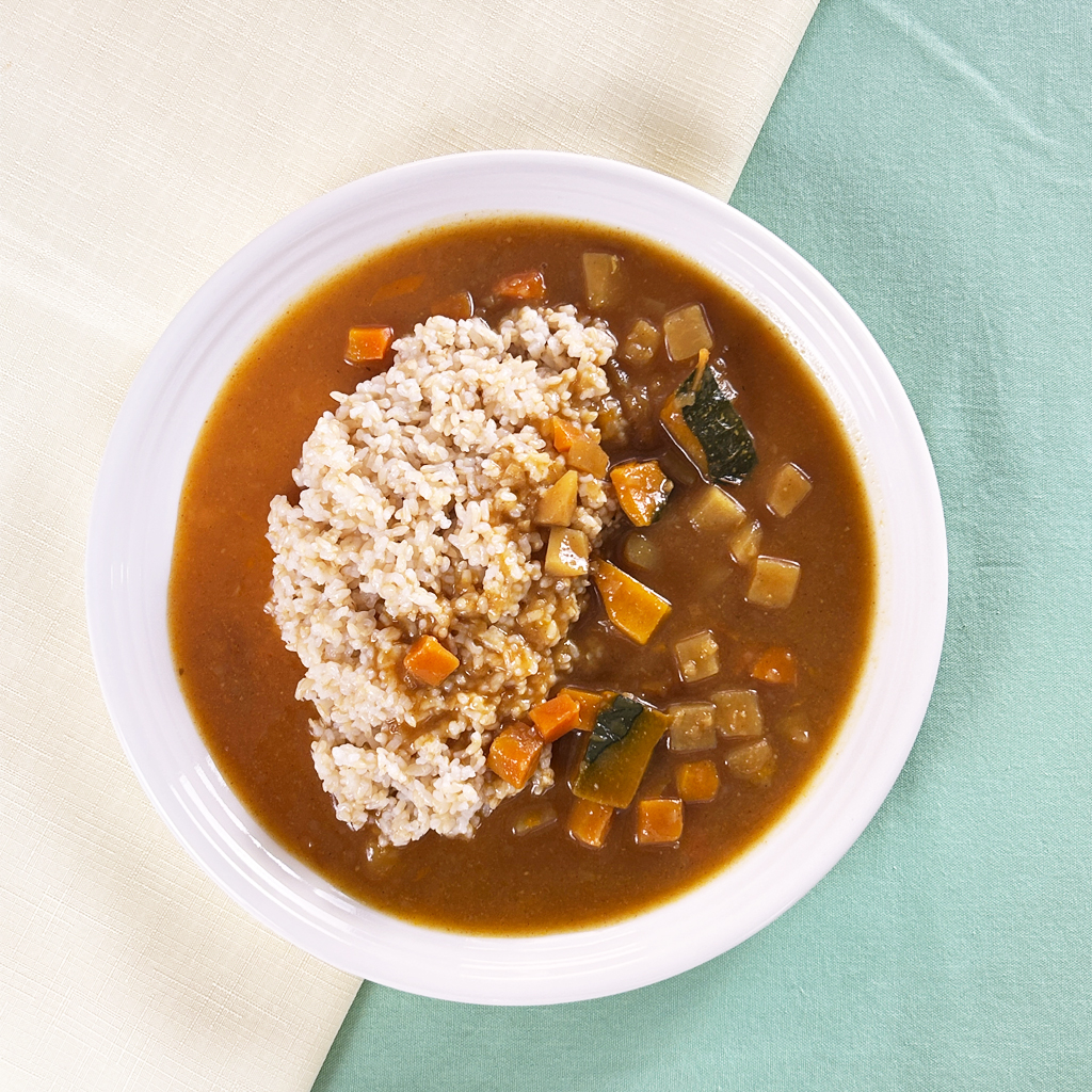 - ローストオニオン[玉ねぎ(国産)]、特別栽培かぼちゃ・特別栽培じゃがいも・特別栽培にんじん(国産)、なたね油、りんごジュース[りんご(国産)]、馬鈴薯でん粉、メープルシュガー、小麦粉[小麦(北海道)]、醤油、酵母エキス、有機トマトペースト[有機トマト(アメリカ)]、食塩(海の精)、白菜エキス、おろし生姜[生姜(国産)]、おろしにんにく[にんにく(国産)]、味噌、カレー粉、クミン(イラン、インド)、コリアンダー (モロッコ、カナダ)、ターメリック・シナモン(中国)