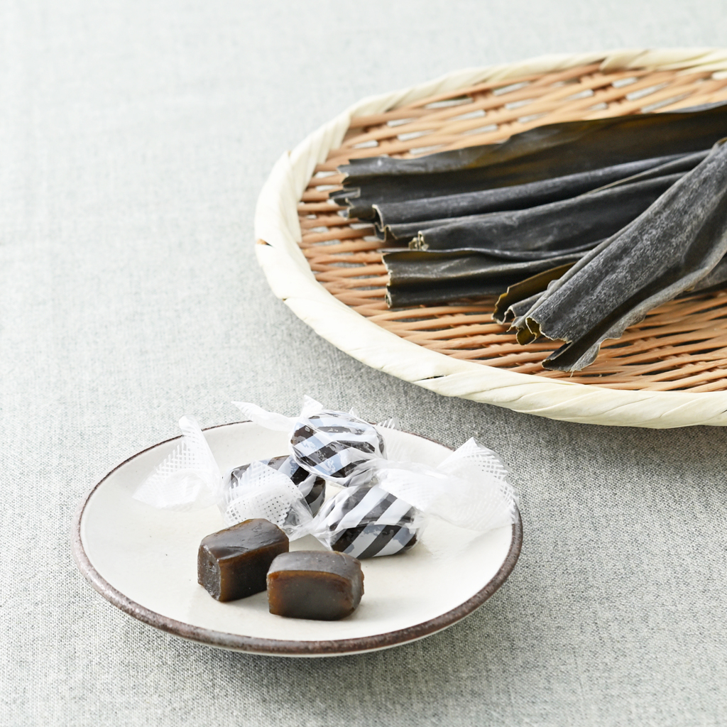 - 麦芽水あめ、てんさい含蜜糖、でん粉[小麦粉・米粉・全粒粉(国産)]、昆布(北海道)、食塩(海の精)、根昆布粉末(北海道)
