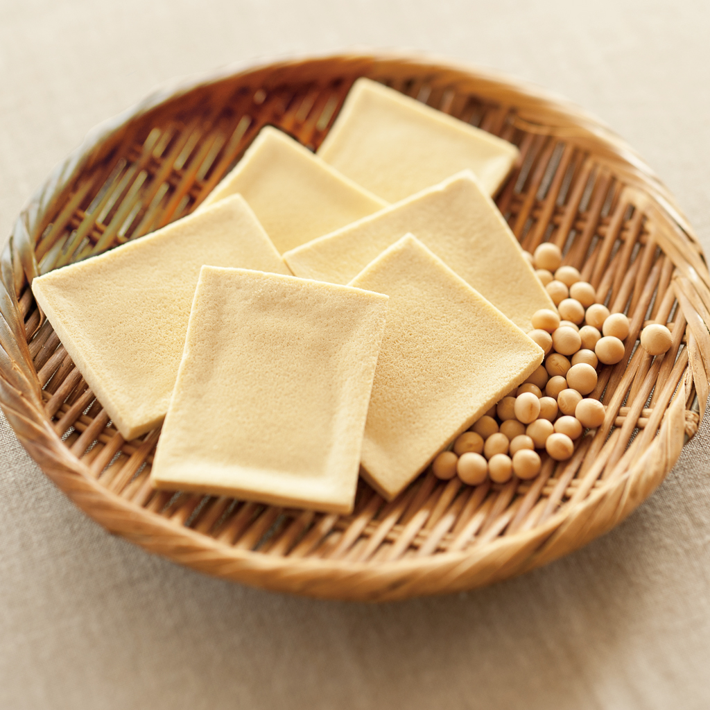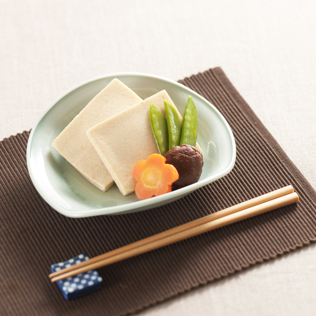 豆乳からつくられる高野豆腐は、長期保存ができ、しっかりとした歯ごたえとやさしい味わいで、昔からの伝統食です。
