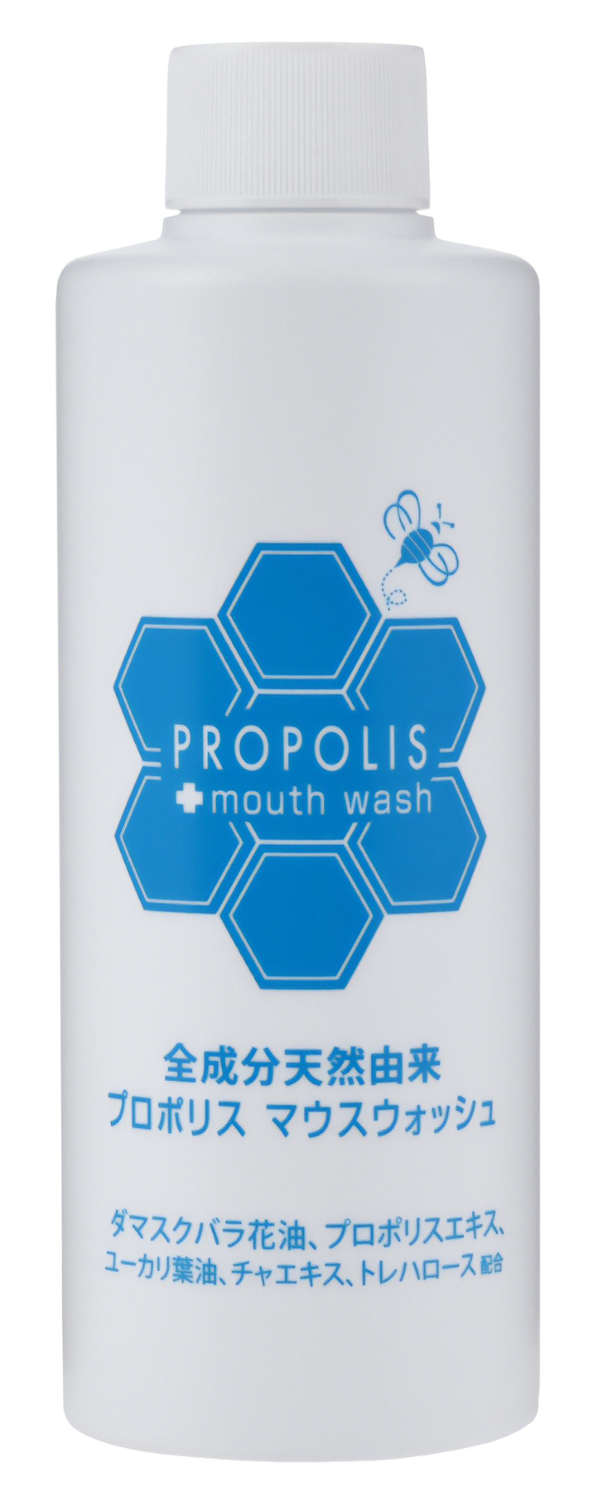 - 水(基剤)、エタノール(溶剤)、グリセリン(湿潤剤)、ラウリン酸スクロース(洗浄剤)、ハッカ油・メントール(香味剤)、ダマスクバラ花油、ユーカリ葉油、チャエキス、プロポリスエキス(矯味剤)キシリトール、エリスリトール、トレハロース(洗浄補助剤)、クエン酸Na(pH調整剤)
