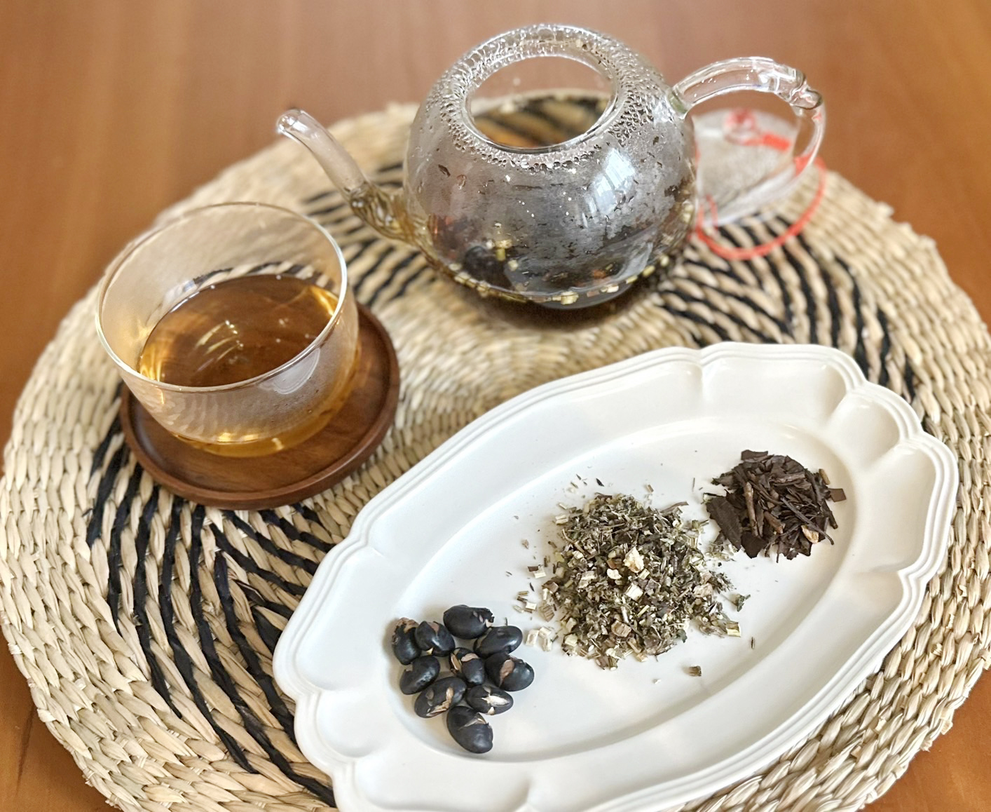 ポットに材料を入れ、お湯300mlを注ぎ、5分蒸らす。