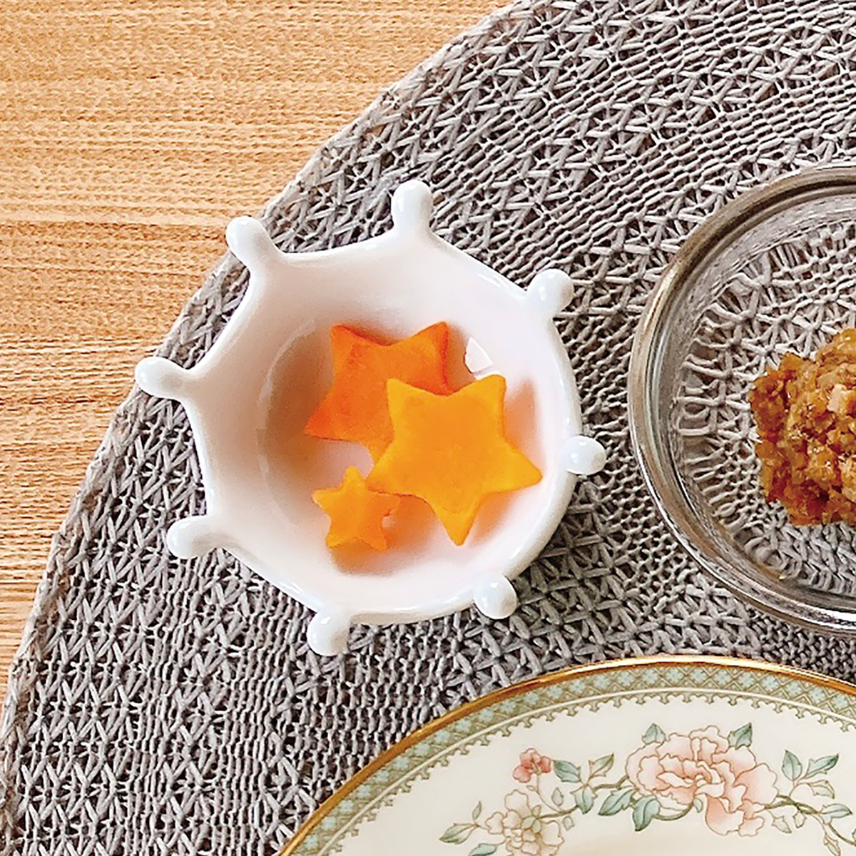 1.人参は5mm厚の輪切りにして、好きな型で抜き、塩をまぶしてしばらく置く。