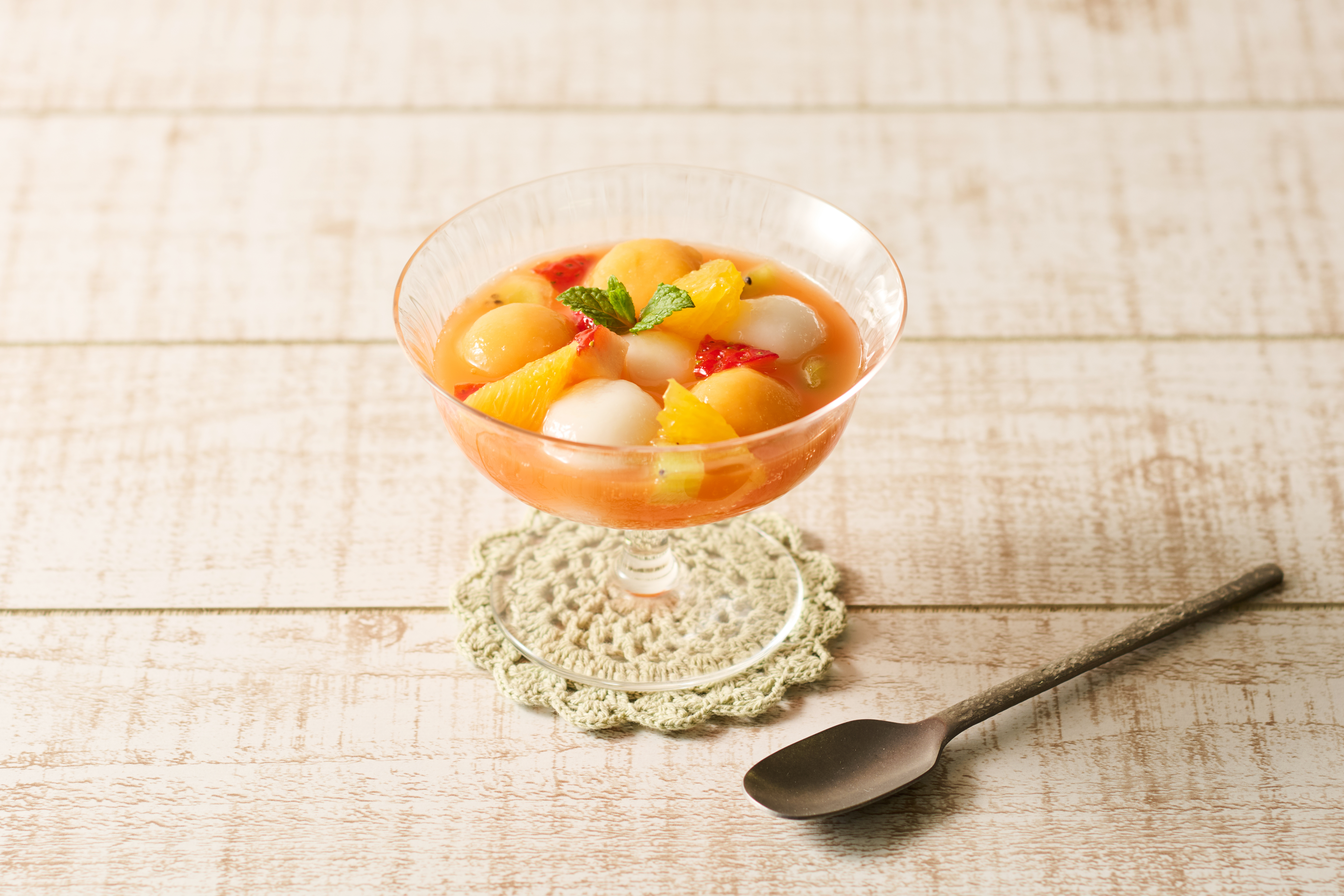 お子様にも召し上がりやすい美味しさの、色鮮やかなフルーツ白玉ポンチです。