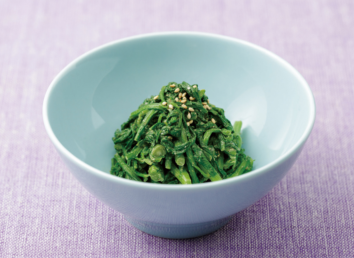 2.胡麻ペーストと醤油を合わせ1を和え、白胡麻を振る。