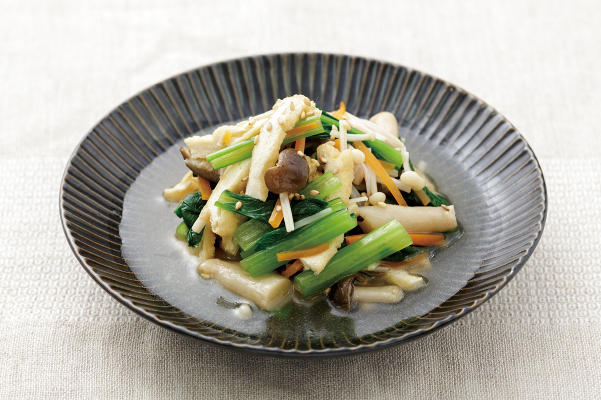 2.しめじ、えのきは3cmに切る。人参、油揚げも同じ様に切る。