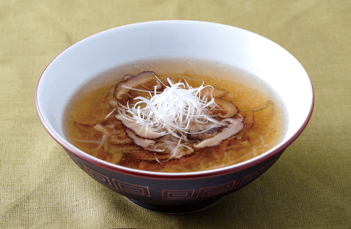 3.器に1と2を入れ、塩と醤油で調味した熱いだし汁をはり、白髪ねぎをのせる。