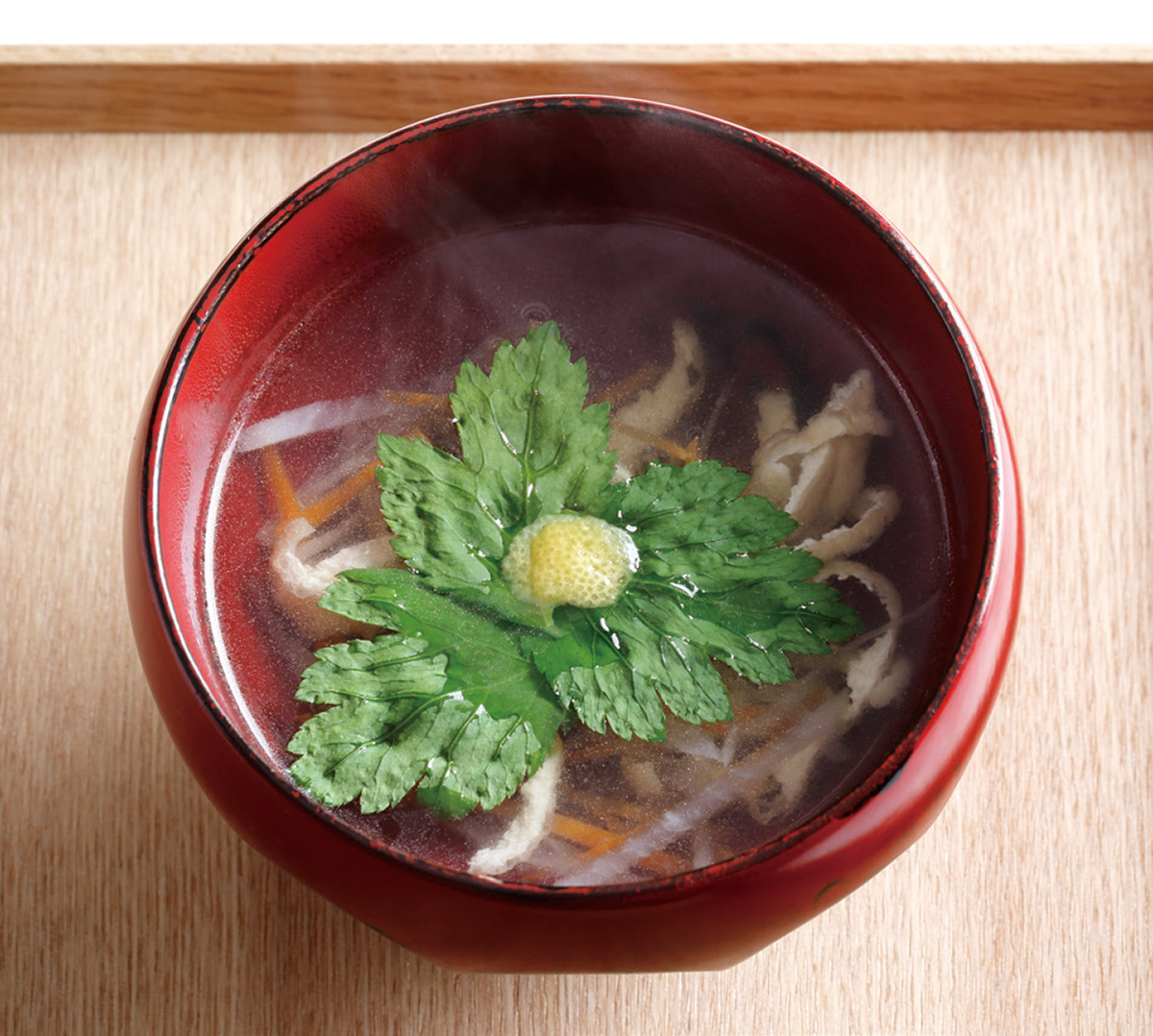 3.器に温かい汁を入れ、三つ葉を散らし柚子をのせる。