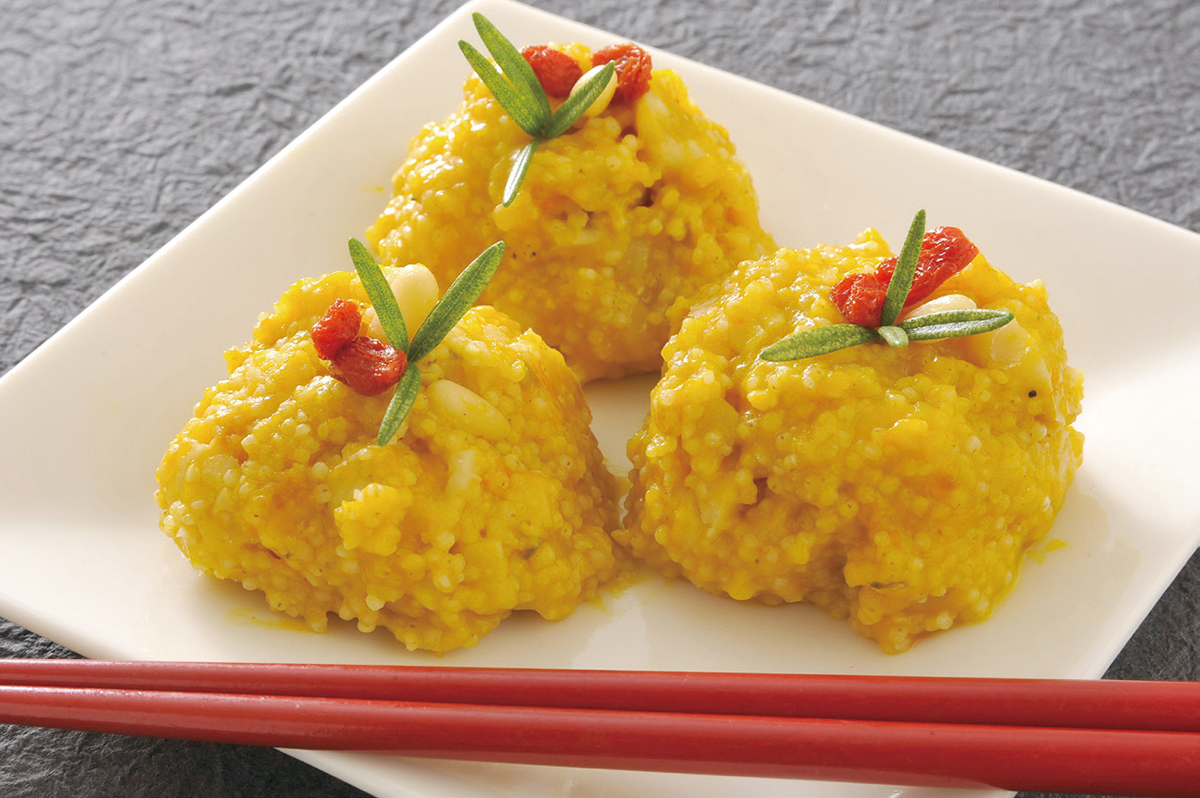 2.南瓜とさつま芋は適当に切って蒸し、マッシャーでつぶしてから裏漉しして焼き塩を混ぜる。