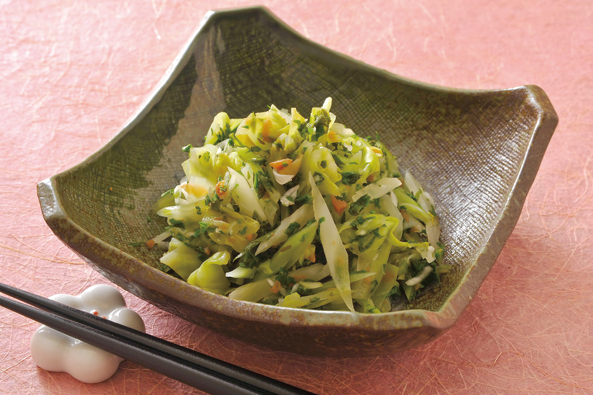 2.キャベツを入れ、2~3分茹でて取り出し、水を切る。