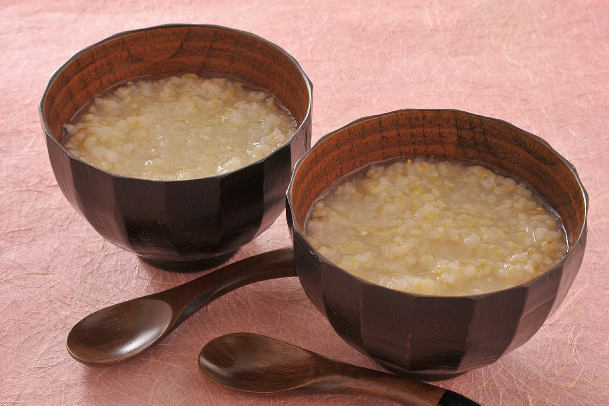 2.小鍋に玄米粥を1カップ入れ、焼き塩あるいは麦味噌少々で薄味をつけてから大根おろしを加える。