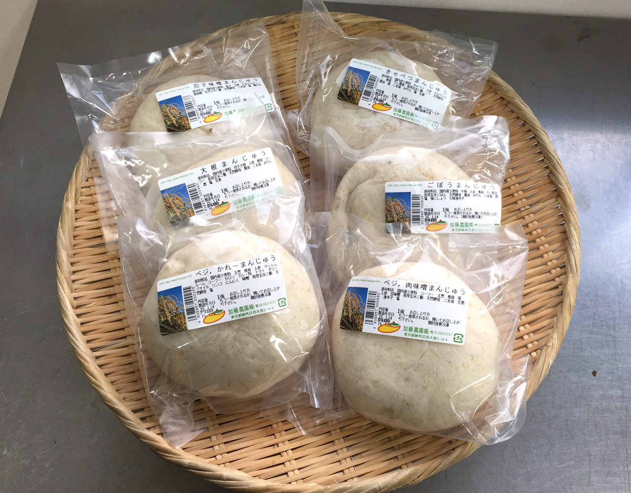 おまんじゅうの中には、厳選した野菜などで作った具がたっぷり。 |