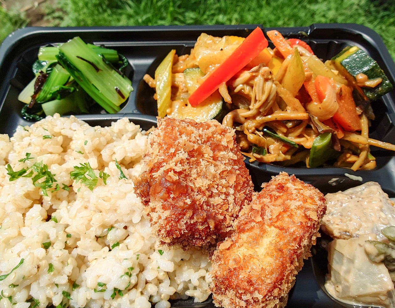 vegan bento(lunch box), natural yeast bread, snacks, ramen, curry, ice cream and more! We have also a variety of fresh foods.