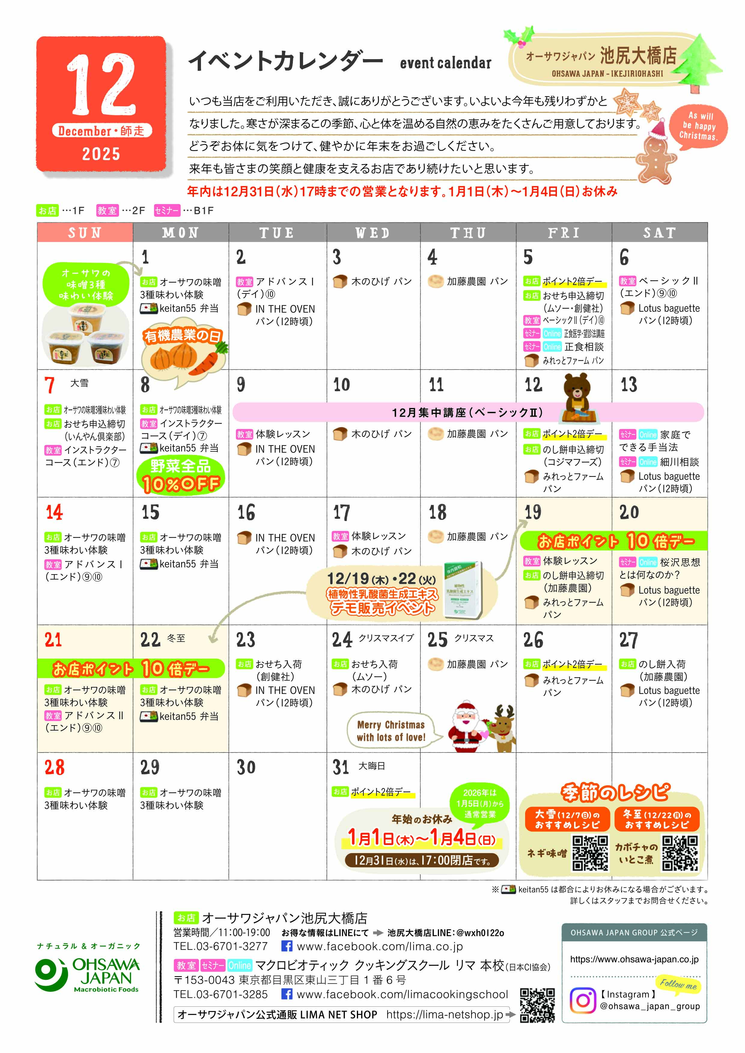 12月イベントカレンダーのお知らせ