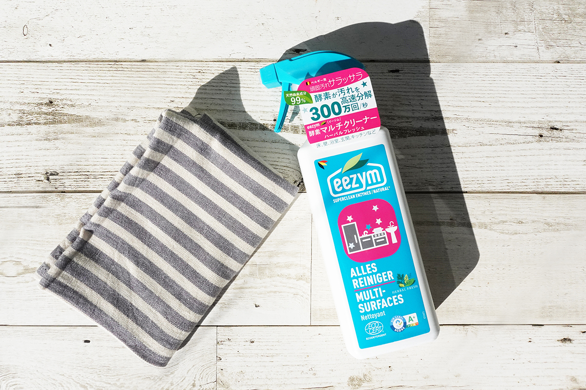 スプレーして水拭きするだけ!家具や壁、床、キッチン、バスルームなどに使えます。