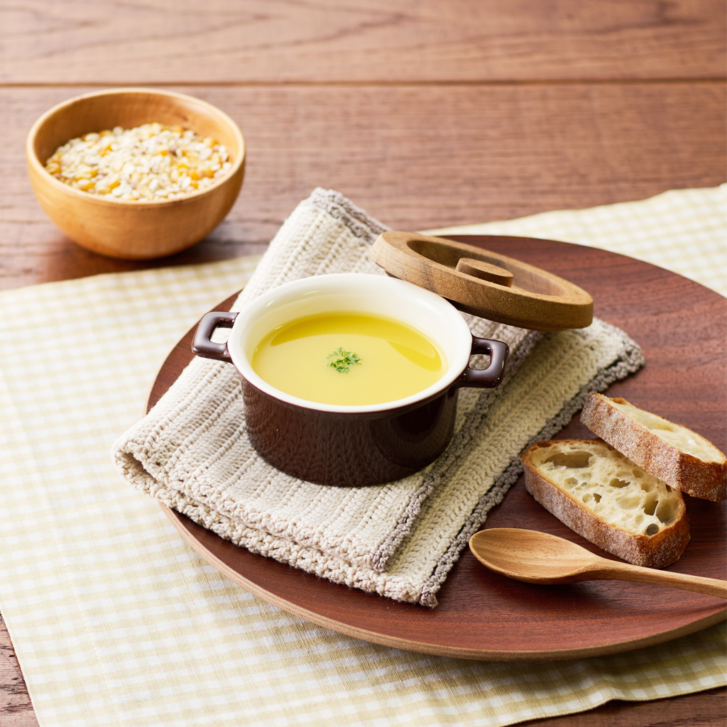 - とうもろこし(北海道)、玄米(栃木県)、はと麦(岩手県)、食塩(天塩)、かぼちゃ・玉ねぎ(北海道)、昆布エキス、大麦(群馬県)、もちきび(北海道)、たかきび(岩手県・福島県)、ひえ(岩手県・北海道)、あわ(岩手県・北海道)、パセリ(国産)、こしょう
