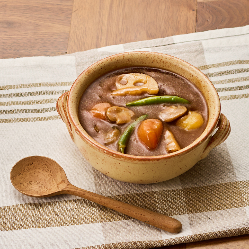 - 有機パーム油(コロンビア)、玄米粉[米(山形・宮城・秋田県)]、粉末野菜[トマト(イタリア他)、玉ねぎ(アメリカ)、にんにく・生姜(中国)、セロリ(インド)]、メープルシュガー、酵母エキス、食塩(天日塩)、馬鈴薯でん粉[じゃがいも(北海道)]、濃縮りんご果汁、有機立科豆みそ、有機赤ワイン、麦芽エキス(大麦由来)、有機ココア、有機こしょう