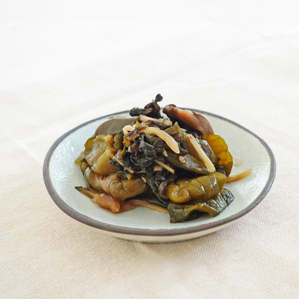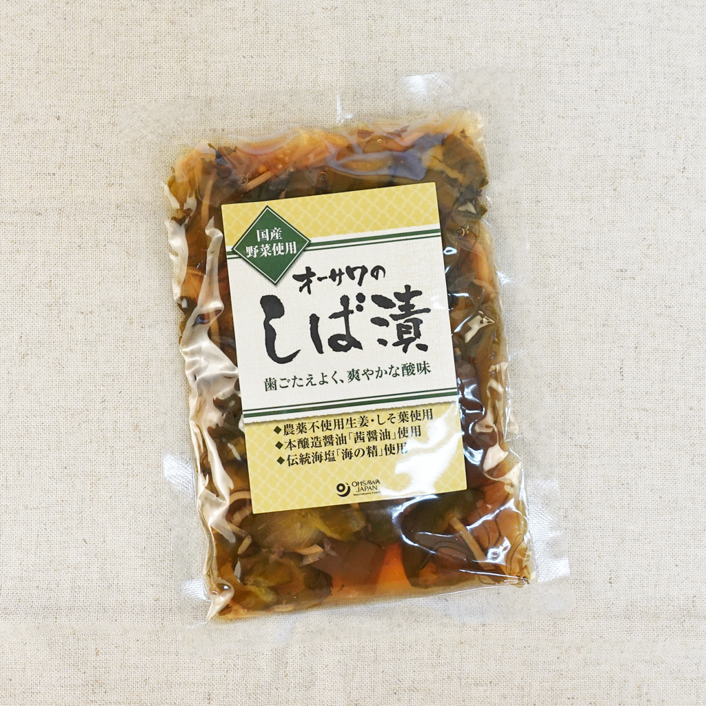 - きゅうり(宮崎県)、なす(徳島県他)、有機生姜(千葉県)、紫蘇葉(宮崎県)、昆布(北海道)、漬け原材料[米飴、梅酢、本みりん、醤油(茜醤油)、昆布だし、食塩(海の精)]